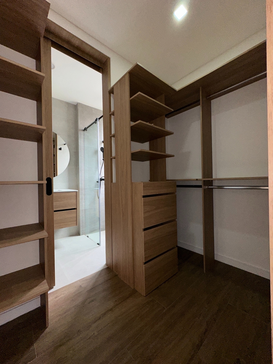 Diseñamos y fabricamos cocinas, closets, centros de entretenimiento, baños, licoreras, estudios, puertas y más. Cada pieza está pensada para integrarse con la arquitectura del espacio, optimizando su funcionalidad y estética.